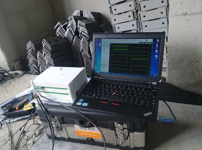 塔吊的不同部位按对称两侧粘贴应变片,起吊不同重量的货物,进行应变测试,根据弹性模量,计算相应的应力。升降机测试,测试单侧载物和双侧载物。升降机测试是在安全值范围内按照分成几个重量等级,进行依次提升不同的重量,监测不同部位的应力,对升降机的安全性能进行分析。