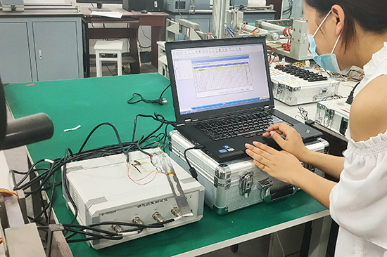 在钢尺表面安装传感器,连接数据采集仪,试验开始通过传感器测出测点产生的应变,根据数据分析、计算,得出结果。