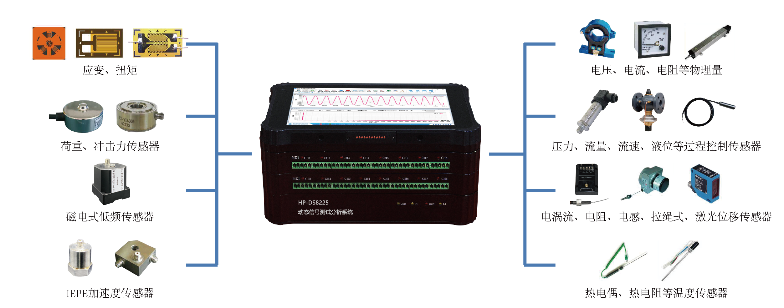 3、测量类型:每通道任意选择输入类型,混合接入不同传感器,无需外接调理模块。