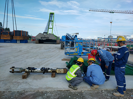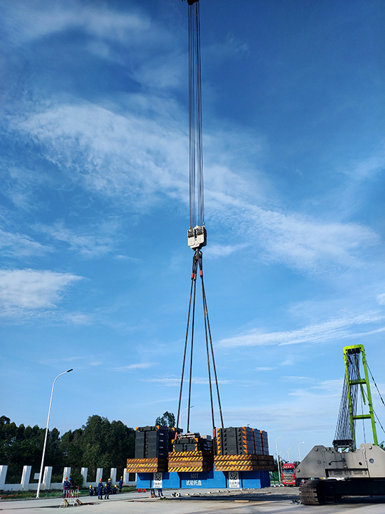 在吊装拉杆表面安装传感器,连接数据采集仪,试验开始通过传感器测出测点产生的应变,根据数据分析、计算,得出结果。