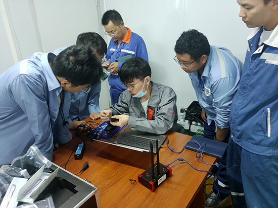 华龙一号模块一是反应堆厂房安全壳的重要组成部分,位于核岛底部,是核电站的重要安全屏障。钢衬里模块一结构尺寸大,重量重,板薄,属于薄板圆柱体空间结构,结构刚度小,模块吊装前下口调平难度大,吊装防变形控制及安装精度控制要求精准,偏差内半径要求±50毫米内,标高偏差要求±3毫米内。吊装难度大,精准度要求极高,面对复杂的施工环境及极高的吊装要求,施工方选择采用HP-JW6无线静态应力应变测试仪,实时监测16根吊装拉杆受力平稳性,可及时调控受力偏差,保证吊装精度。