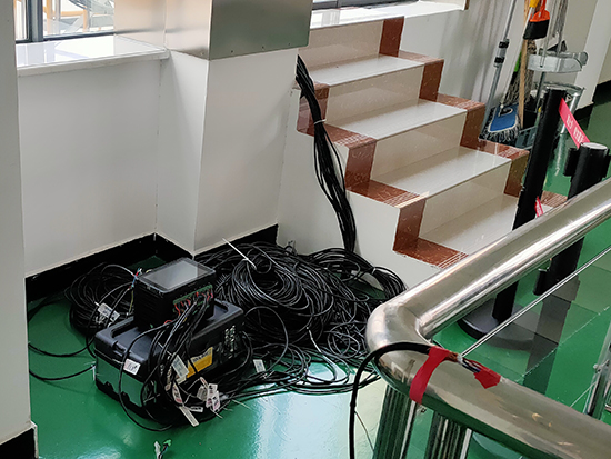 在节制闸测点上安装传感器,连接数据采集仪,试验开始通过传感器测出测点产生的应力、加速度数据,根据数据分析、计算,得出结果。