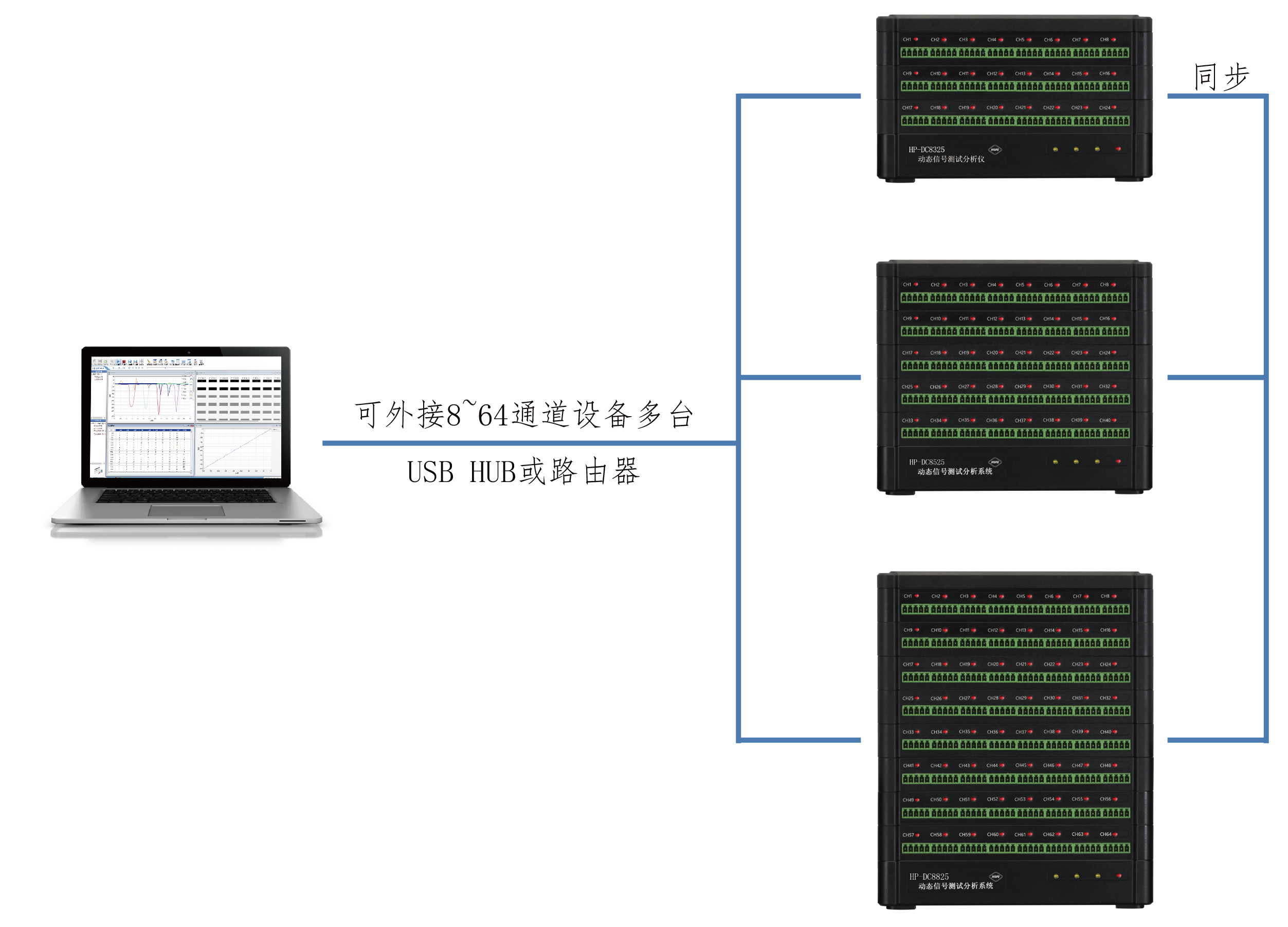 1、测量点数:8~64通道,所有通道同步采集。