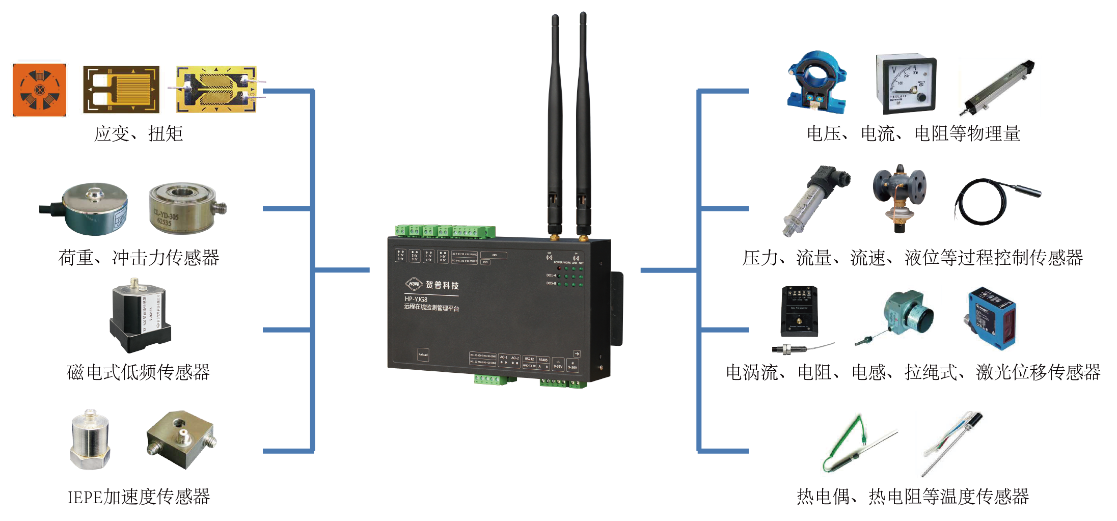 应变式:力、压力、扭矩、位移等应变式传感器。