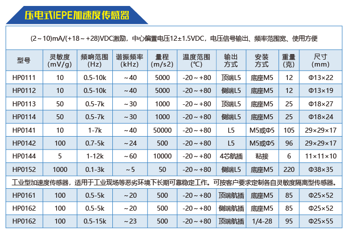 产品名称:压电式IEPE加速度传感器