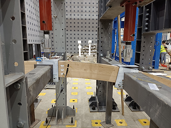 花旗松材性试验为揭示花旗松胶合木在顺纹方向不同受力情况下的本构关系以及为后续胶合木拱试件试验和理论分析提供依据,对花旗松木材顺纹的抗压、抗拉及抗弯力学性能进行了试验研究,得到了花旗松木材顺纹方向的受力本构关系。压弯作用下胶合木圆弧拱平面内稳定试验选用工程中较为常见的胶合木圆弧拱,对花旗松胶合木圆弧拱的平面内稳定承载力进行试验研究。